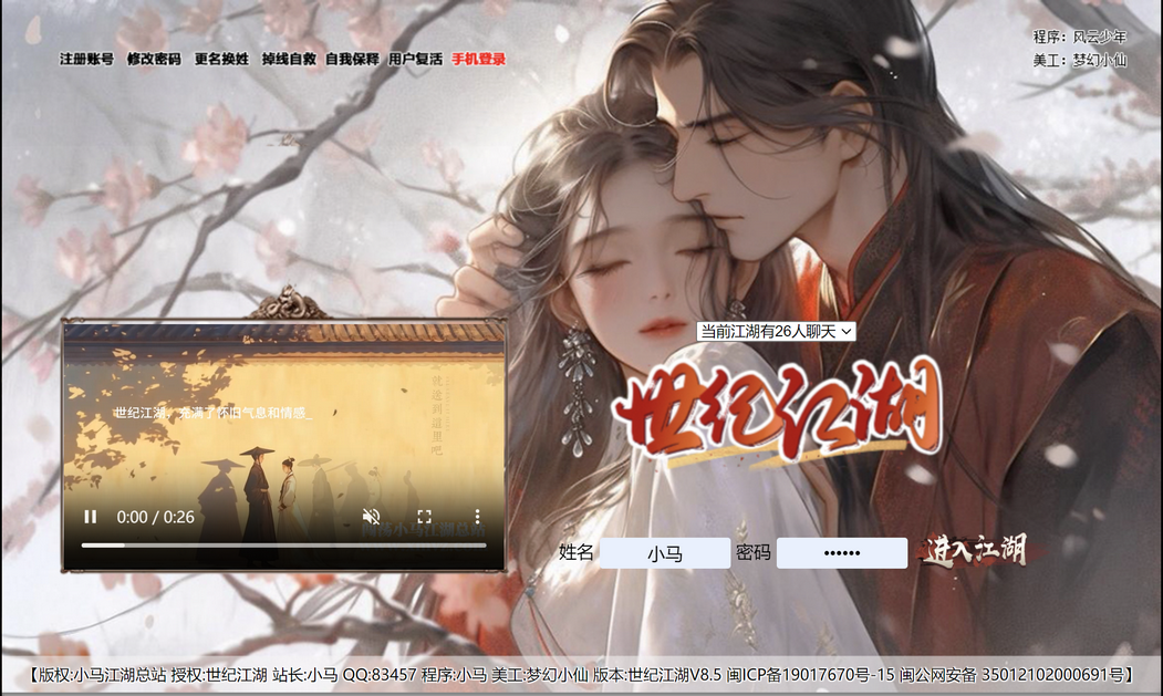 【版权:小马江湖总站 授权:小崂夫江湖 站长:小崂夫 QQ:797683 程序:小马 美工:梦幻小仙 版本:世纪江湖V8.5 闽ICP备19017670号-15 闽公网安备 35012102000691号】